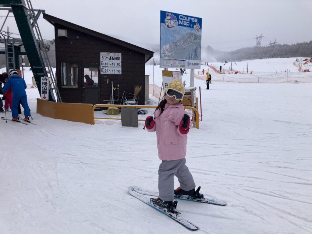 2026/2/7(土) 1日雪降りのブランシュたかやま。午前中はほぼスキー初めてのまゆちゃん。キッズファンコースのほとんどを自力で滑ってきました。うまい。