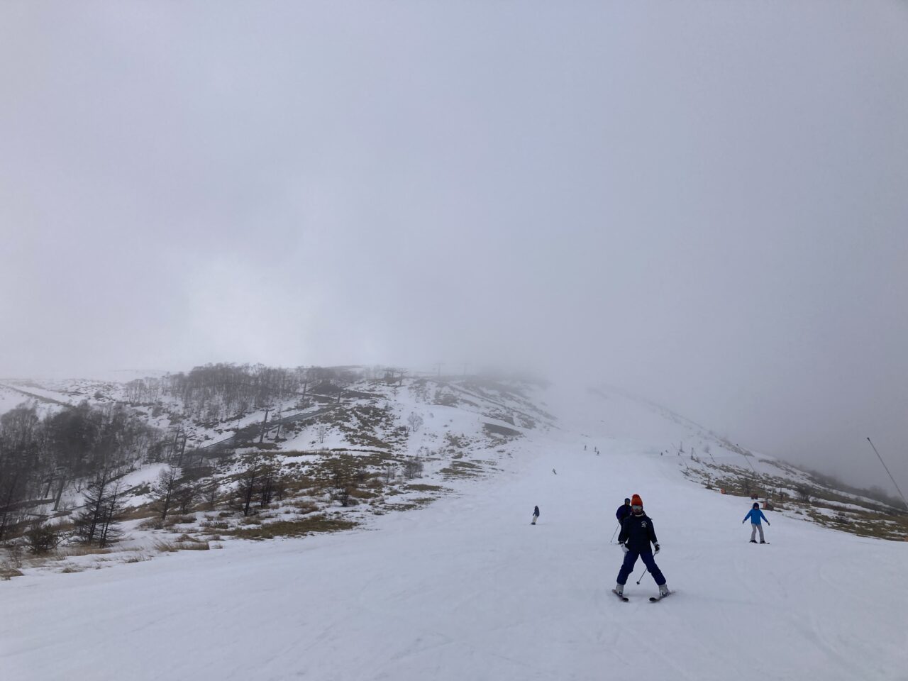 2026/2/28(土) 車山高原でりょうた君と。ほとんどガスで真っ白け。なんとか酔わずに耐えました。サブサブで疲れるバーンでしたが、うまく滑ってました。