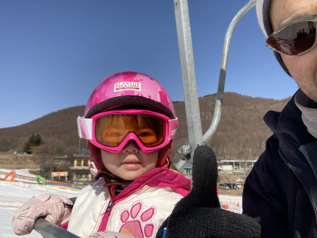 2026/3/1(日) ブランシュたかやまで姉妹と。1月に初スキーのひかりちゃんは、キッズファンコースのほとんどを滑れるようになりました。リフト2本目で安定感が増しました。
