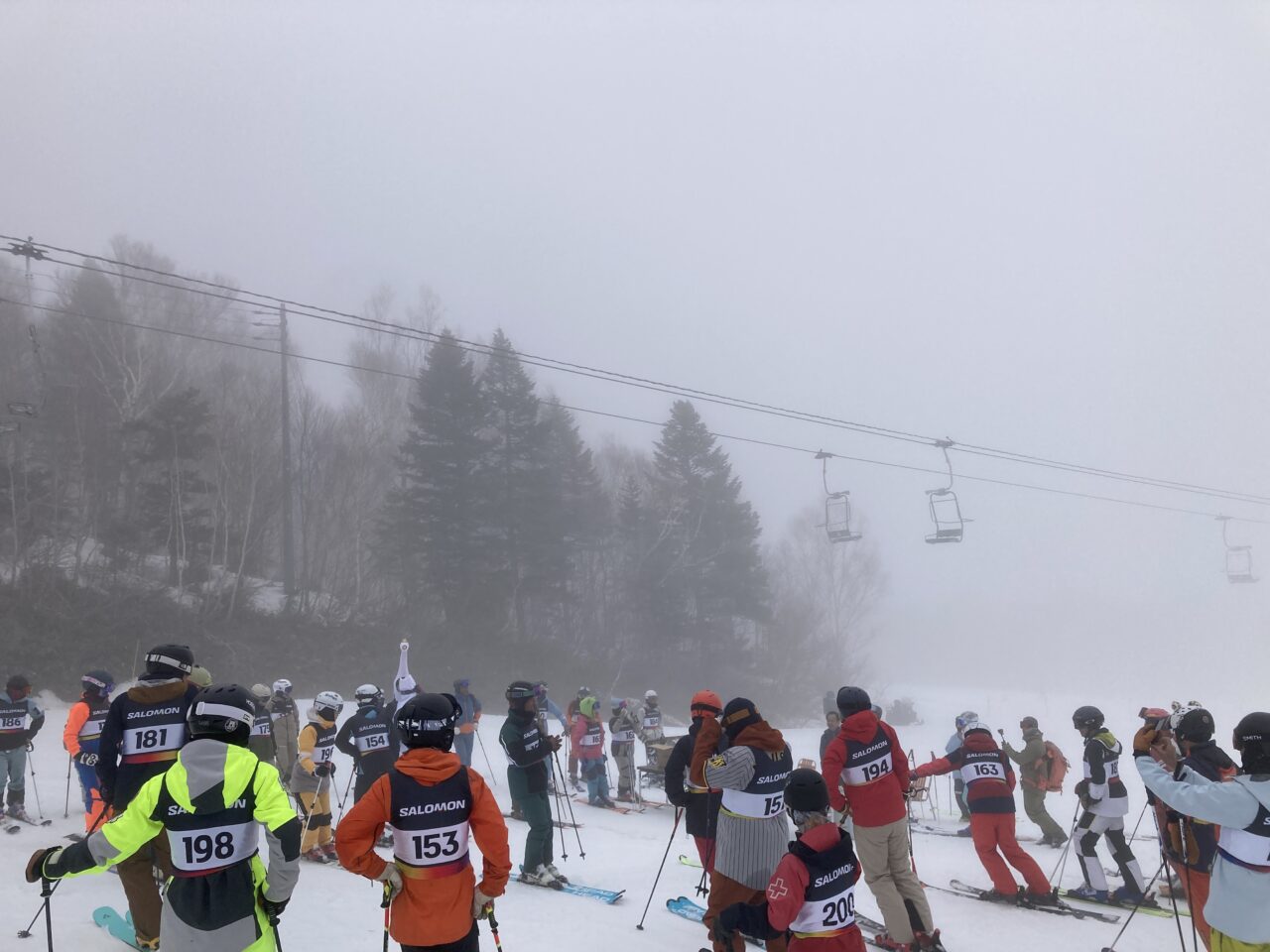 しかし当日はガスって真っ白けで大会中止に。みんなで滑ることになり、楽しく滑ってきました。みなさんありがとうございました。(次は息子を連れて行こう!)